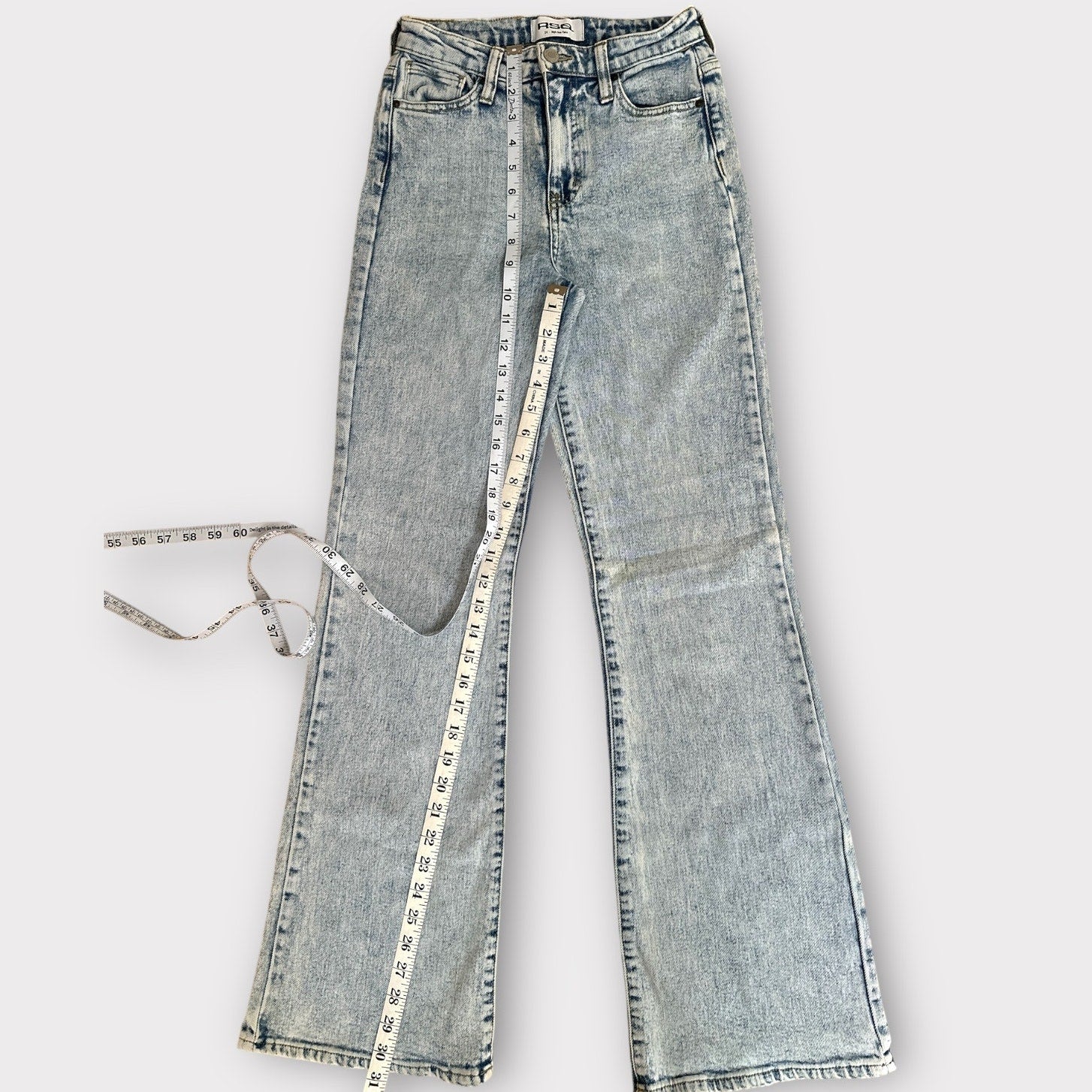 Step back in time with these fun and flirty 90's style RSQ High Rise Flare Jeans! The acid wash light blue denim gives off a trendy, vintage vibe. Perfect for adding a touch of retro flair to any outfit.