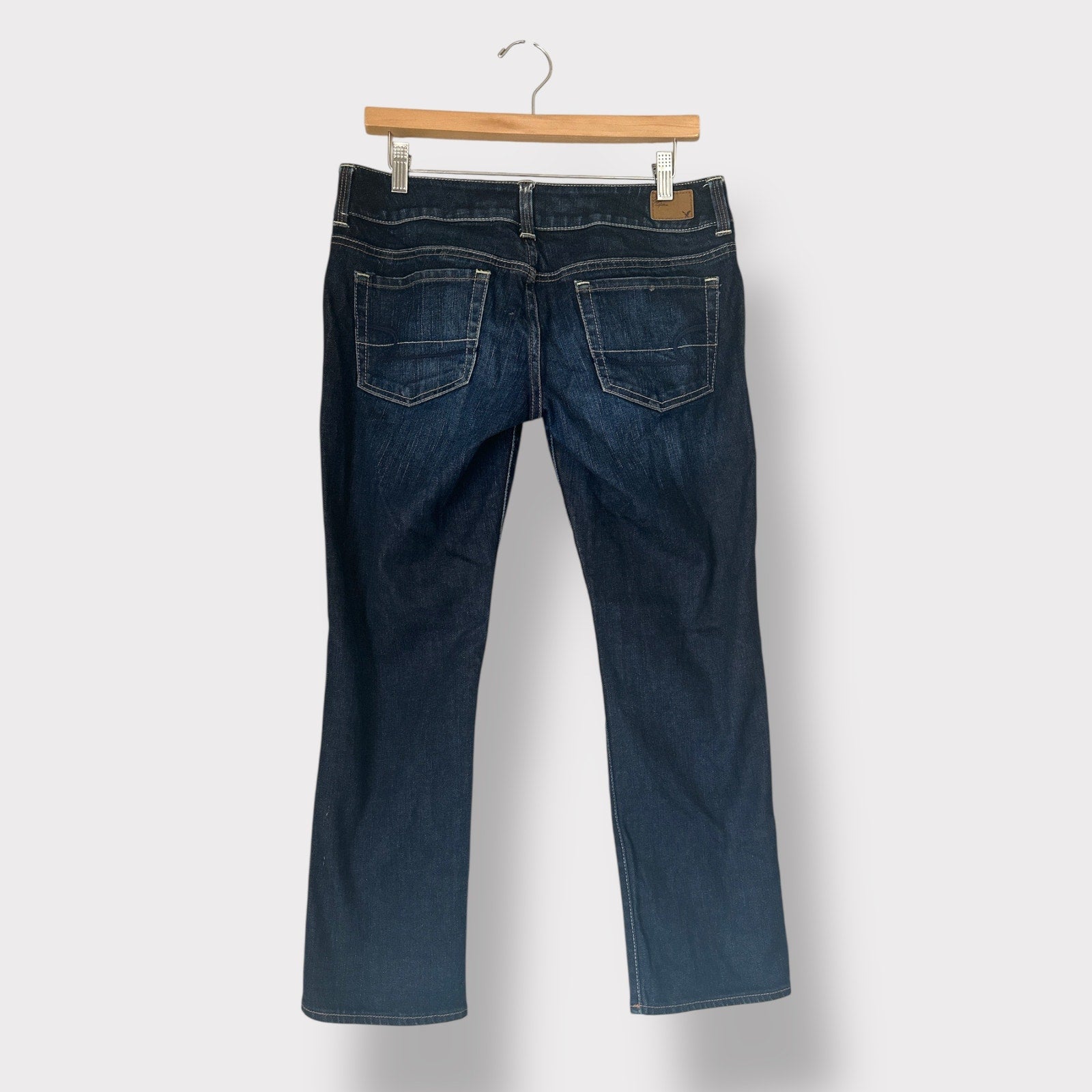 These Y2k American Eagle low rise artist jeans in a dark wash, size 6, are in excellent used condition! They have a slight stretch for a comfortable fit. Perfect for a retro look!